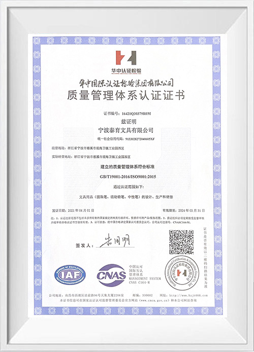 Ningbo Taiyu Stationery Co., Ltd. شرکتی است که صنعت و تجارت را با هم ترکیب می کند، چینی است که به تولید خودکارهای ژل، مدادهای مکانیکی، انواع مختلف نشانگرها، هایلایترها و لوازم نقاشی مبتنی بر آب اختصاص دارد. با تکنولوژی قالب گیری تزریقی پیشرفته، کنترل کیفیت دقیق، و تیم توسعه، یک پایگاه تولید نوشت افزار و طراحی در مقیاس بزرگ با تولید متنوع در چین است. این شرکت تولید، ساخت و تدارکات تجاری را با تمرکز بر بازارهای با کیفیت بالا و با کیفیت بالا یکپارچه می کند. این می تواند روزانه 150000 محصول قلم تولید کند که عمدتاً به ایالات متحده، آلمان، ژاپن، اسپانیا، ایتالیا، بریتانیا، کره جنوبی، استرالیا، کانادا و ده ها کشور دیگر صادر می شود. مشتریان همکار آن صنایع، آموزش، مراقبت های بهداشتی و تدارکات دولتی را پوشش می دهند.